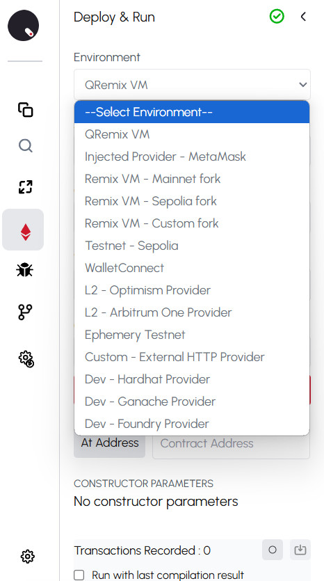 This section defines where your contract will be deployed. The current environments supported in Q-Remix IDE are: