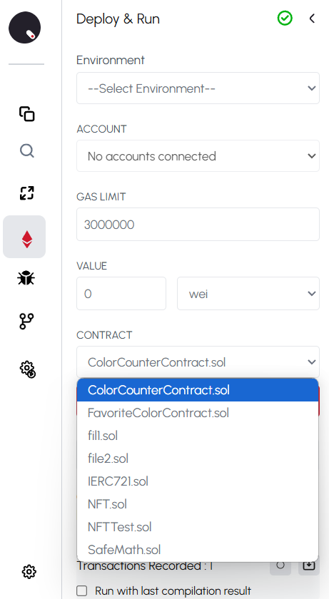 For deploying the selected contract one can use any of the accounts. In the above example one contract has been deployed using the first account.