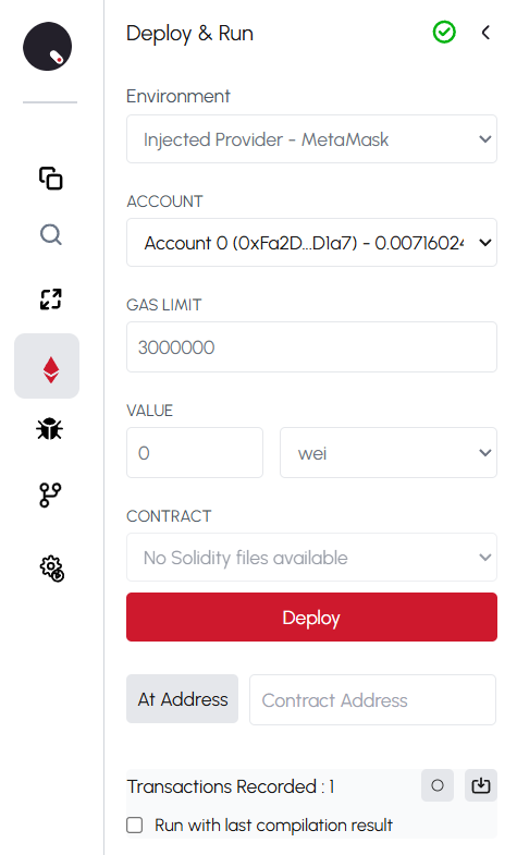After giving your MetaMask password, the selected address or account will be reflected in the Account section of the Deploy & Run